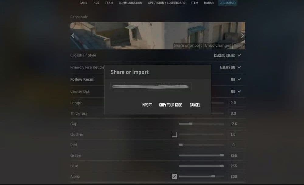 That’s all it takes to change your crosshair. You’ll now have the exact settings used in the code you copy/pasted.