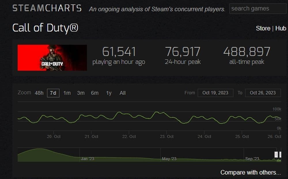 Over the past 30 days, the average number of players in Warzone 2 and Modern Warfare 2 has been around 66,446.6. More impressively, the peak player count for this month reached a remarkable 186,402. These figures underline the immense appeal of Warzone 2 and its thriving player base.