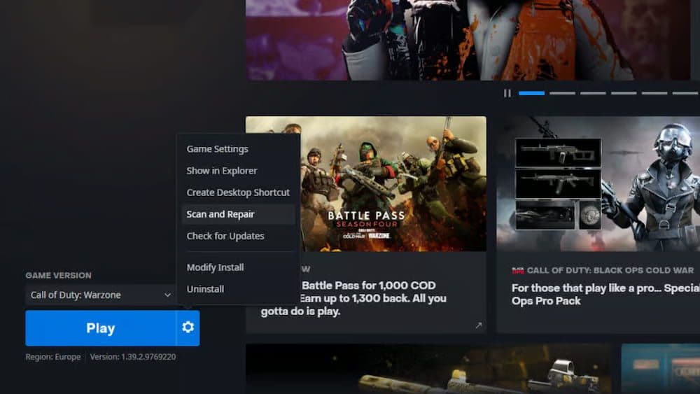 - Click on Warzone 2, then the cog icon beside the Play button.