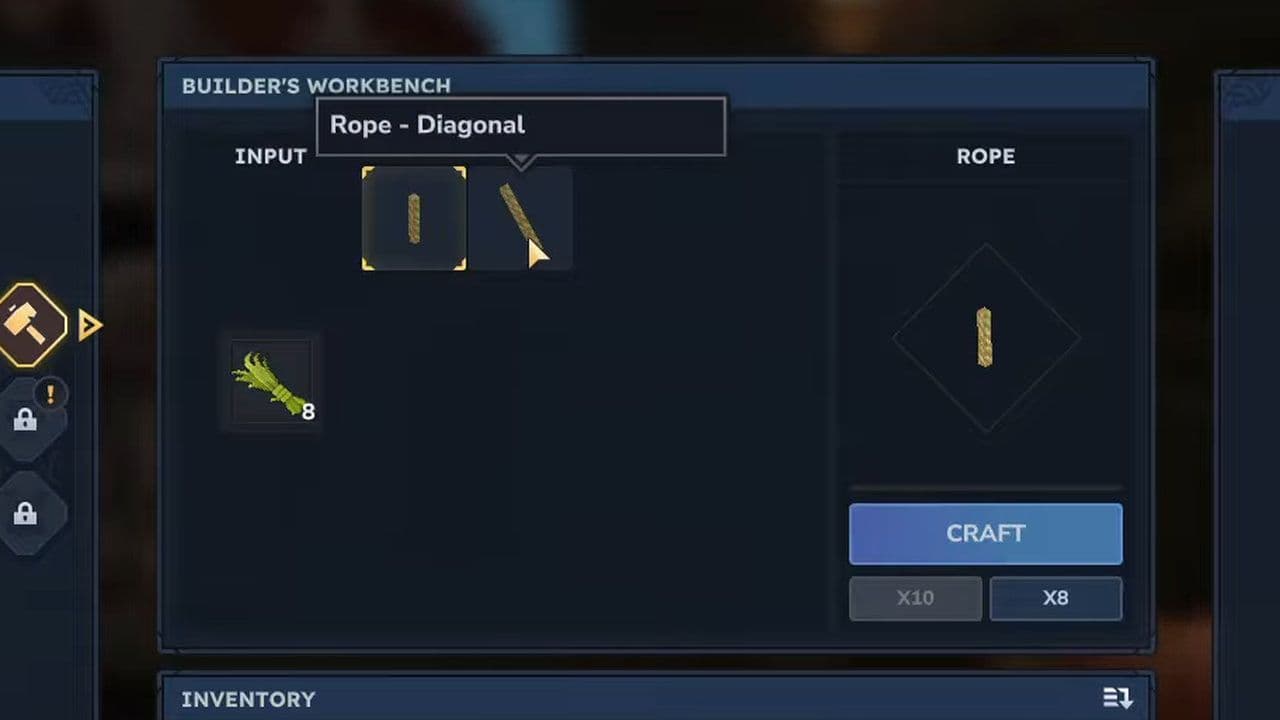 While rope is easy to craft, it requires the correct setup and planning. With Plant Fiber and a Builder’s Workbench, you can create both straight and diagonal rope and use them in a wide range of structures and recipes.
