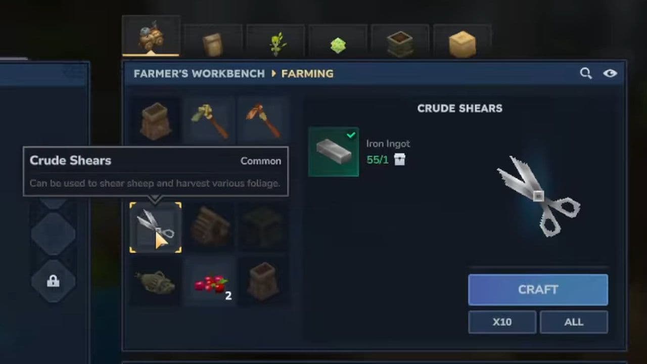 If you want a faster method for how to get poop in Hytale, use Crude Shears (1 Iron Ingot at Farmer’s Workbench).