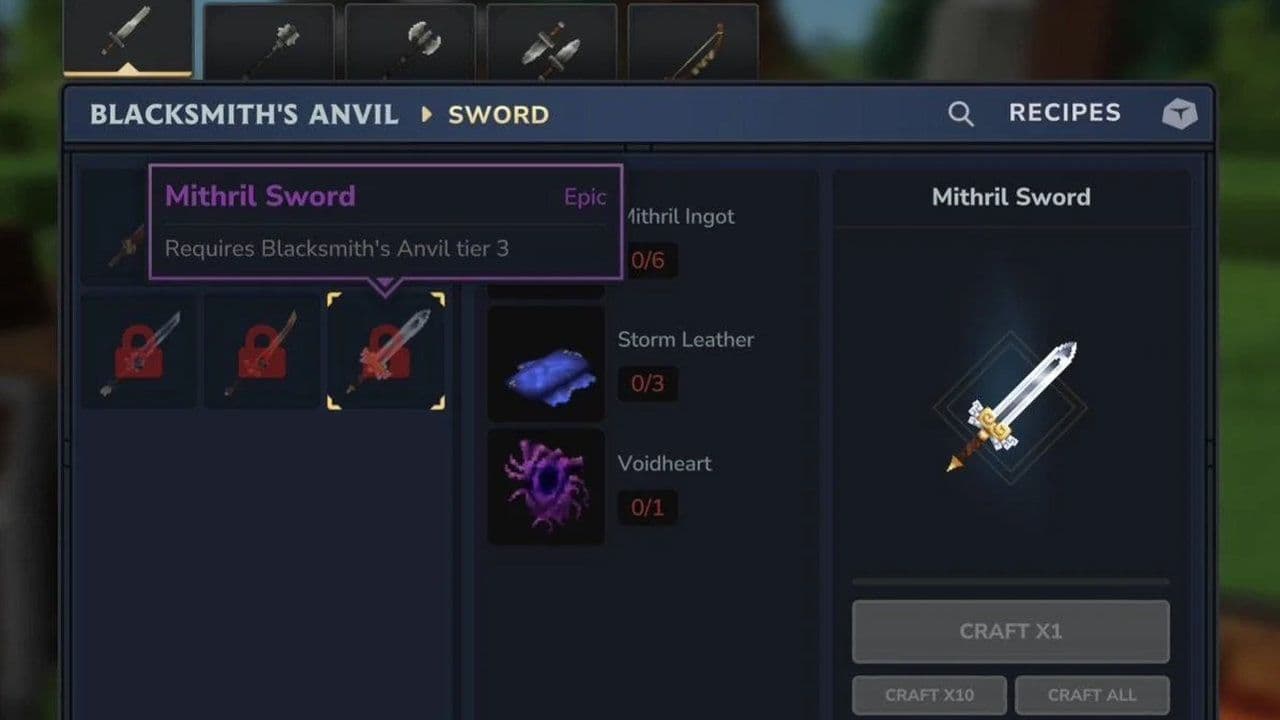 - Tier 3 or higher Blacksmith’s Anvil