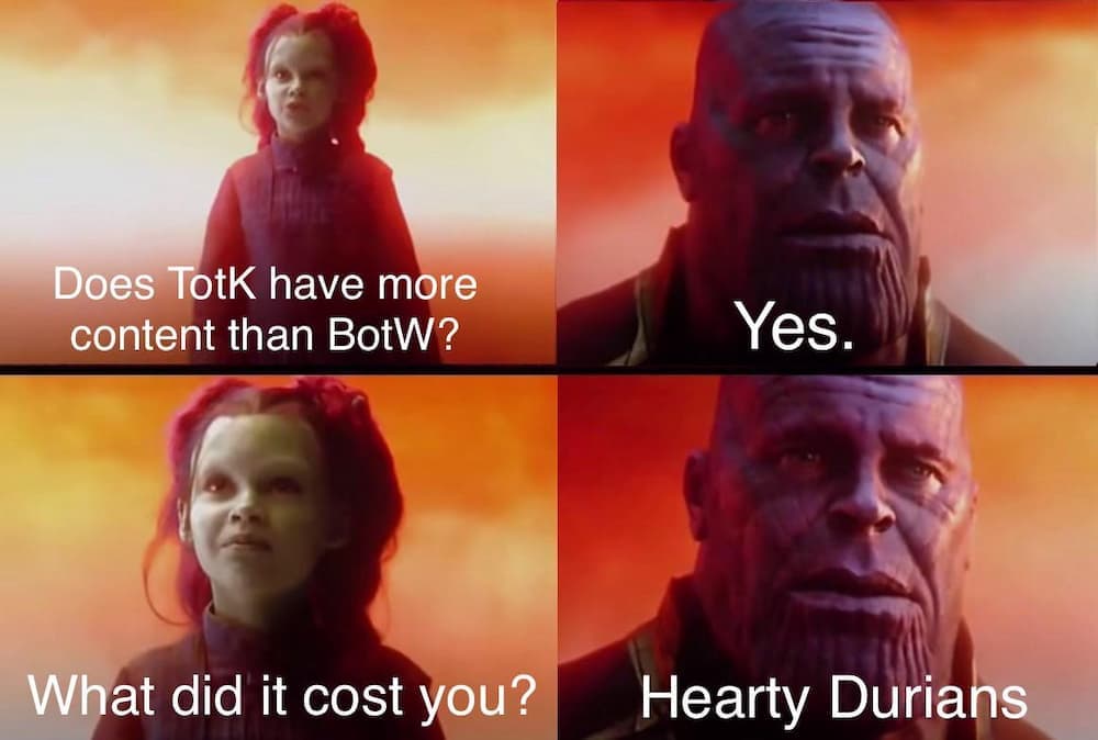 Seriously, why would you even bother cooking any of the 228 recipes in TotK if Hearty Durians were around still?