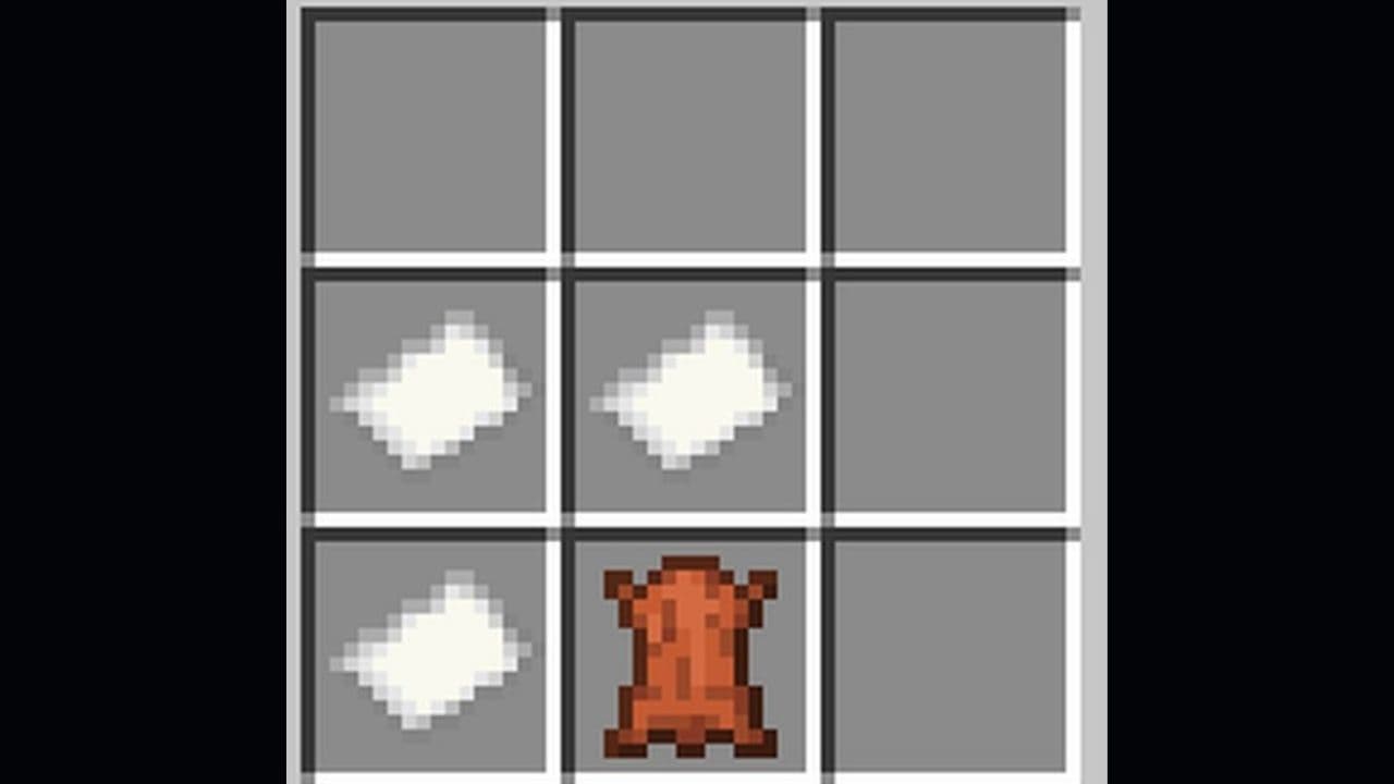 Once you have paper and leather, you can craft a book. Open your crafting table or survival inventory crafting grid and place: