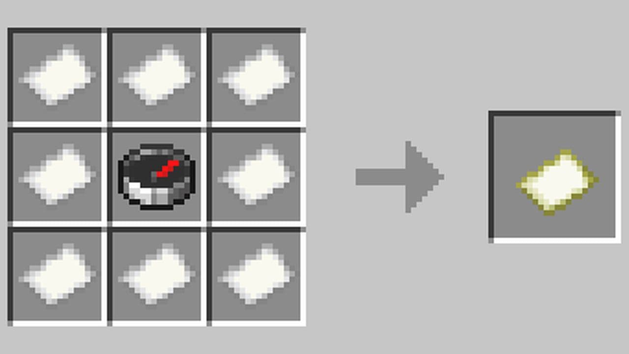 - Crafting maps: A compass is a key ingredient in making locator maps. By combining a compass with 8 pieces of paper in a crafting table, you can create a map that shows your location and movement. This is useful for marking important locations and tracking your position.