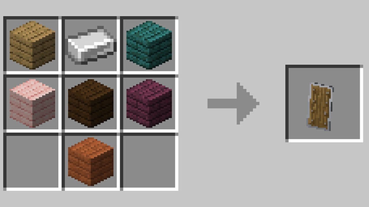 - 6 Wooden Planks (Any type: Oak, Spruce, Birch, Jungle, Acacia, Dark Oak, Mangrove, Bamboo, Crimson, Warped, or Cherry)